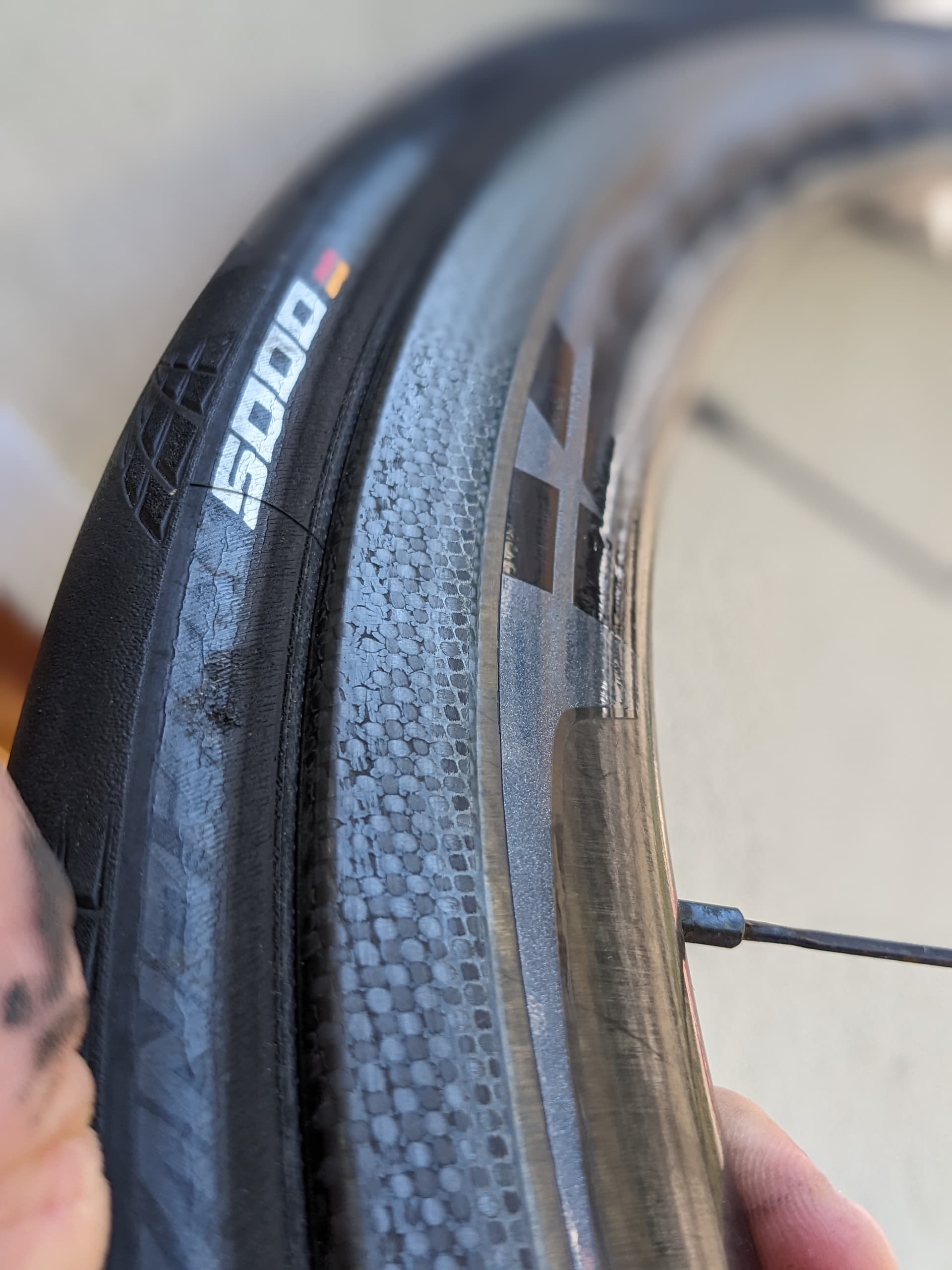 Il me semble par contre qu’il y a une belle rainure sur la bande de freinage, qui me semble problématique. À faire confirmer en physique par un shop expérimenté